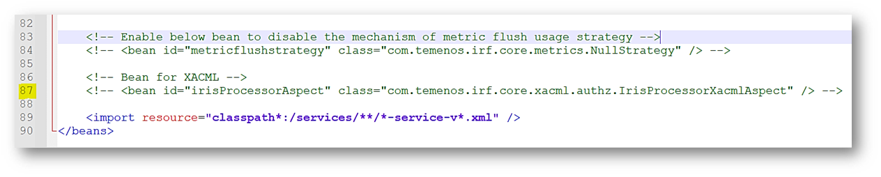 - Comment the highlighted line in the applicationContext.xml file as per below.