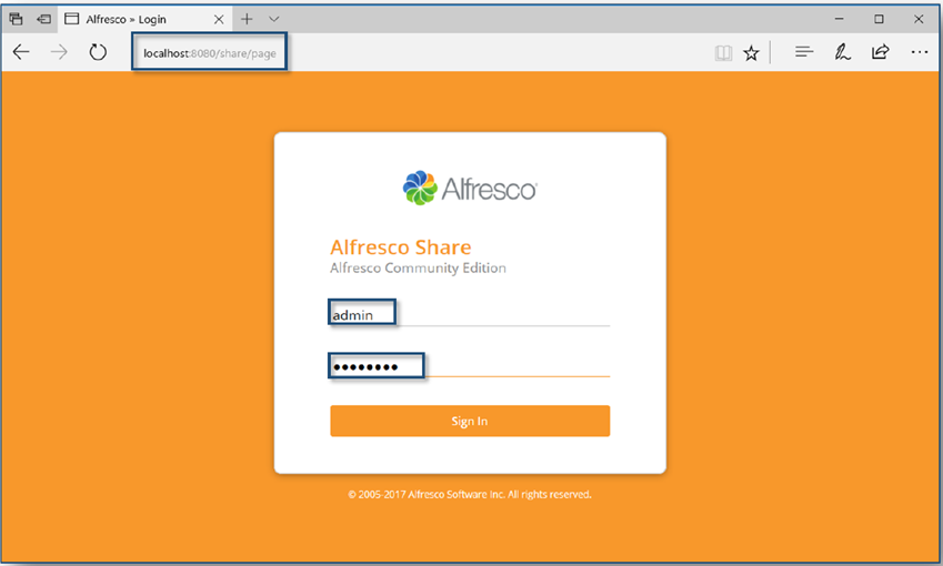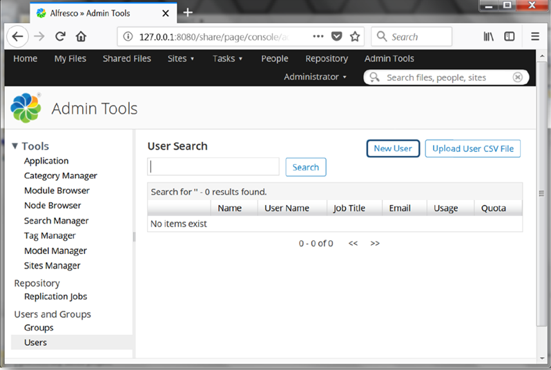 - Select Administrator menu > Logout to close the Alfresco Administrator Dashboard.