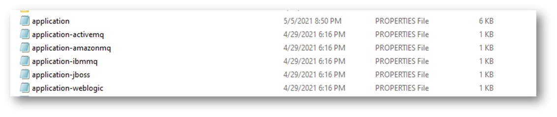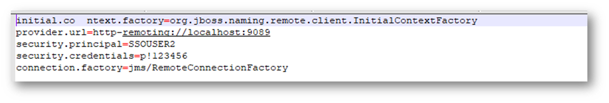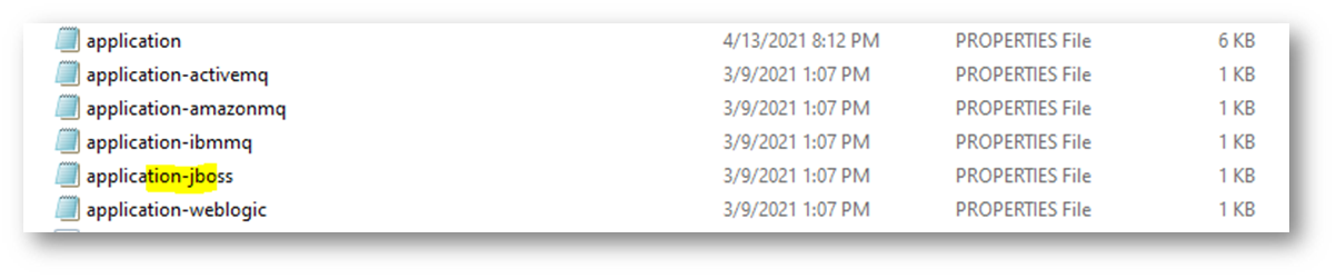 - Open the respective application properties for the queue broker type and set the JNDI values. For example, if the queue broker is jboss, open the application-jboss.properties and set the values.