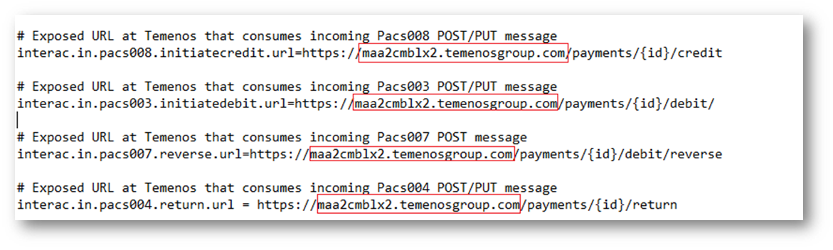 - The end points should be configured in the application.properties file. The below highlighted DNS should be configured based on the client server system where the interface package is deployed.