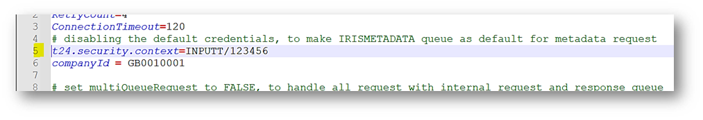 - Uncomment the t24.security.context property in the jms.properties file available in the war file.