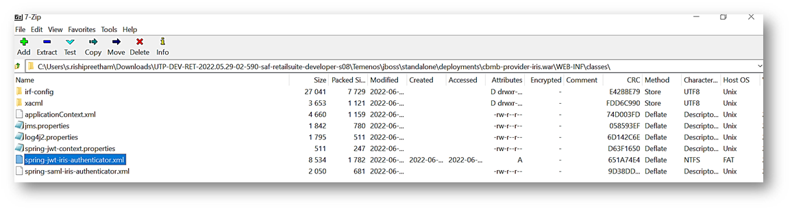 - Add the required claim values in the spring-jwt-iris-authenticator file inside the .war\WEB-INF\classes\, as per below.