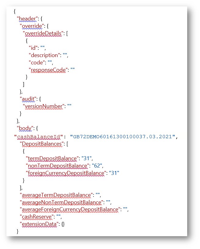 - Retrieve the list of banks for which the deposit balances has not been provided for a given period by using the GET method. The URL for the cash balances API GET method is: http://localhost:9089/cbmb-provider-iris/api/v1.0.0/holdings/cashBalances/03.2021