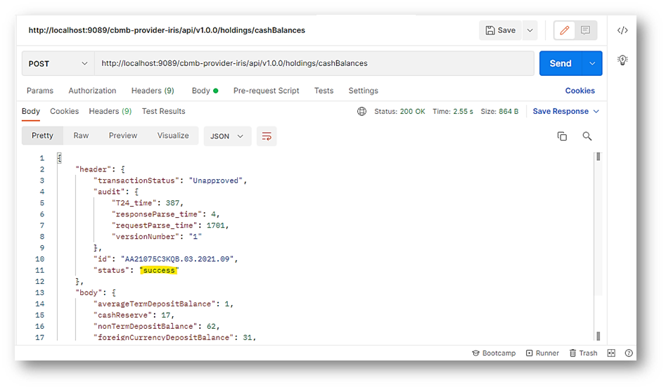 - GET API: http://localhost:9089/cbmb-provider-iris/api/v1.0.0/holdings/cashBalances/03.2021