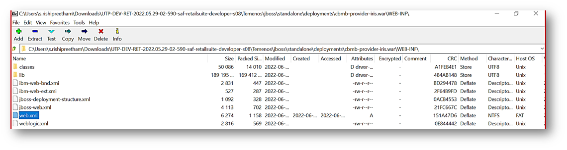 - Deploy the war file in the Temenos > jboss >standalone > deployments folder in UTP.