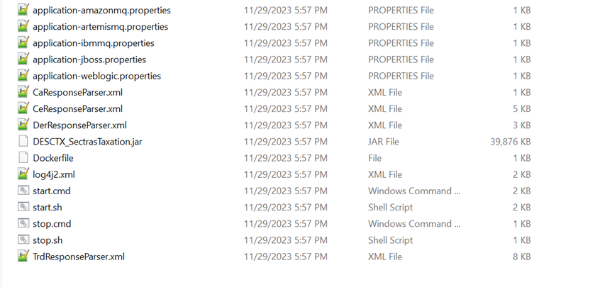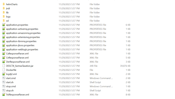 - Unzip the package DESCTX_SectrasTaxation and place it in the required folder. The contents of the package will be as in the below snapshot.