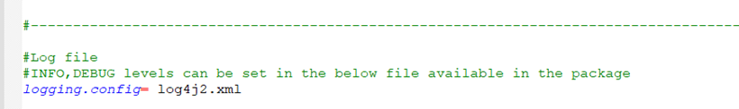 - The Log4j2.xml file will be part of the package in the root directory. This path needs to be configured in the application.properties.