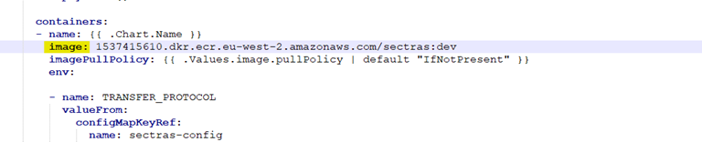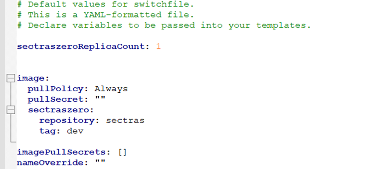 - Update the templates/sectraszero-deployment.yaml with the image name as required in the sample below.