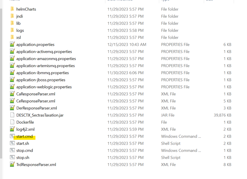 - Configure the java home path in the DESCTX_SectrasTaxation/start.cmd.