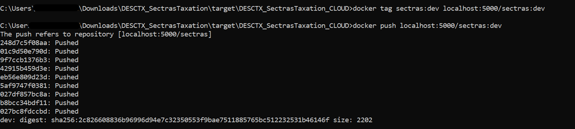 Syntax: docker push <local registry port>/<repository>:<tag>