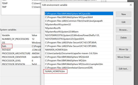 - Add the %JAVA_HOME%\bin in the path variable as in the below screenshot.