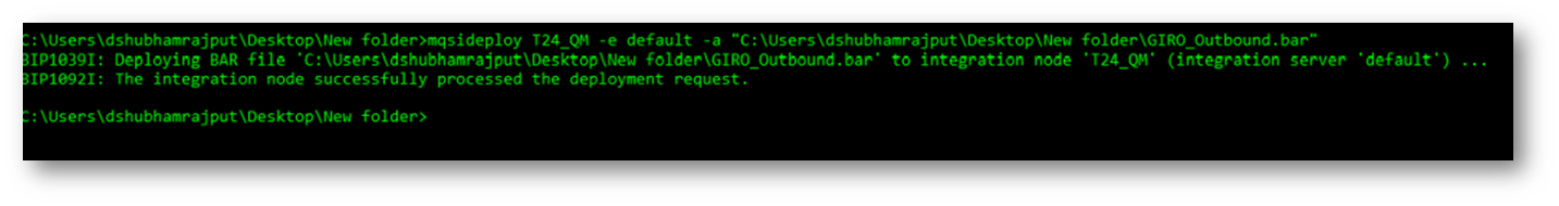 - Deploy the GIRO_Inbound and GIRO_Outbound bar file with the following command: