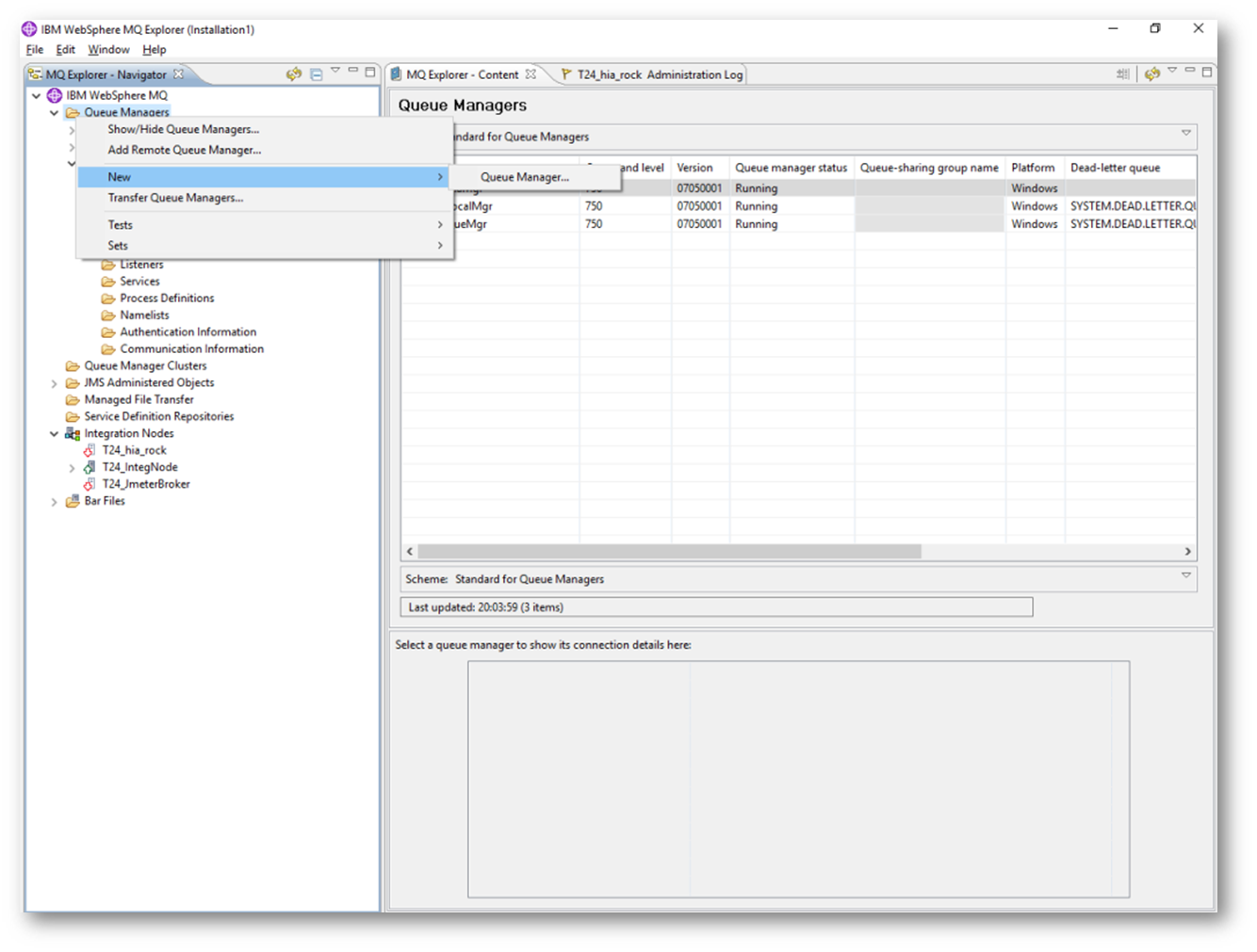 - Create a Broker in IIB console windows: mqsicreatebroker “<<Broker Name>>” -i LocalSystem -q <<Queue Manager Name>>.