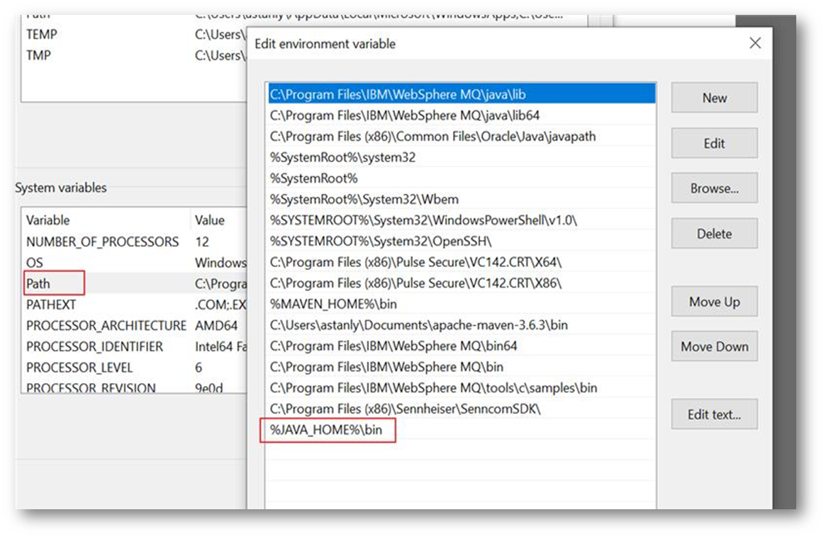 - Add the %JAVA_HOME%\bin in the path variable as per the screenshot below.