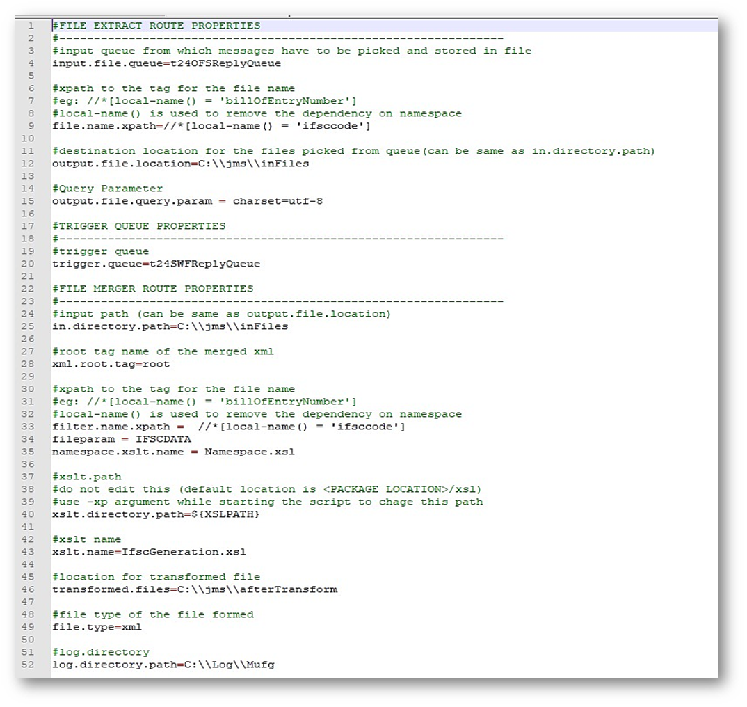 The output.file.location and in.directory.path should be the same. No changes should be done in the xslt.directory.path and xsd.directory.path. - FileName - EBRC