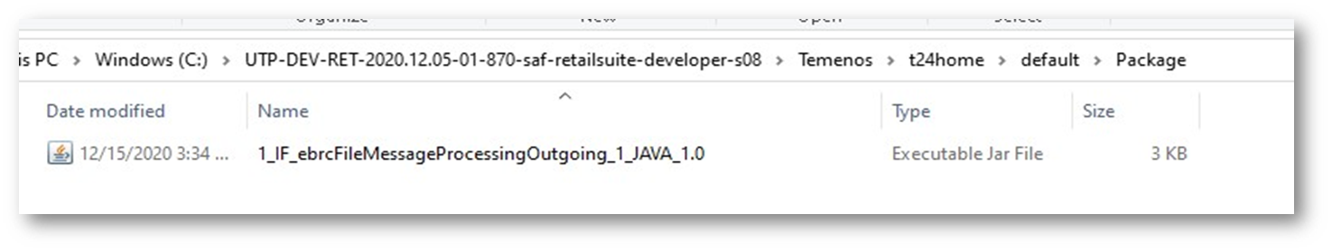 - Place the 1_IF_INLENDEbrcFileMessageProcessingOutgoingIFExitPoints_1_JAVA_<release_version>.jar in the ..\Temenos\t24home\default\Package existing package folder.