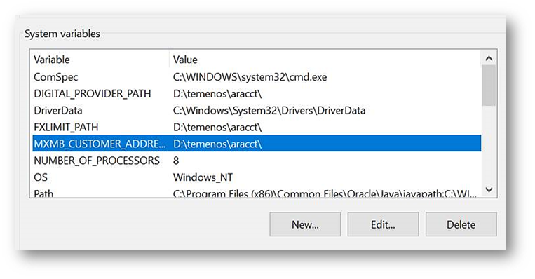 - Create a new environment variable called MXMB_CUSTOMER_ADDRESS to set the folder path to copy the file. An example is provided below.