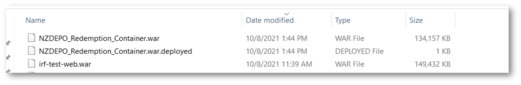 - Deploy the IRIS war in jboss, NZDEPO_Redemption_Container.war, in the following path: Temenos\jboss\standalone\deployments.