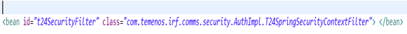 - For t24SecurityFilter, instead of using the null bean class, assign the SpringSecurityContextFilter class using the applicationContext.xml file located in the WEB-INF\classes folder.