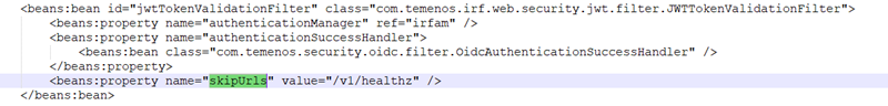 <beans:property name=”skipUrls” value=”/v1/healthz , /v1/anyOtherUrl” />