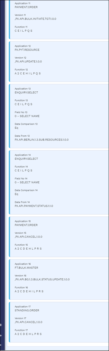 The value in 'roleId' must correspond to a record in the EB.USER.ROLE table. Only the enquiries and available versions associated with this record will be accessible. A sample is shown in the screenshot below.