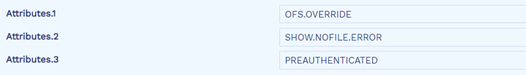 - Set the Attributes field to OFS.OVERRIDE to capture and return overrides or warnings from Temenos Transact.