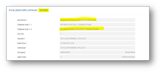 - For the exit point complex join, it needed to call the Temenos Transact routine. This routine name should be configured in the application IF.CALLBACK.IMPL.CATALOG.