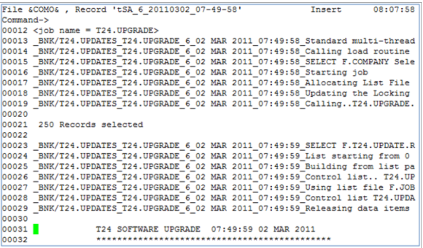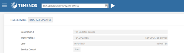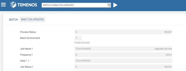 The XXX/T24.UPDATES service releases the data records of Temenos Transact updates and completes the updates installation. In the batch record XXX/T24.UPDATES, you need to specify the Data field value as T24.UPDATES.