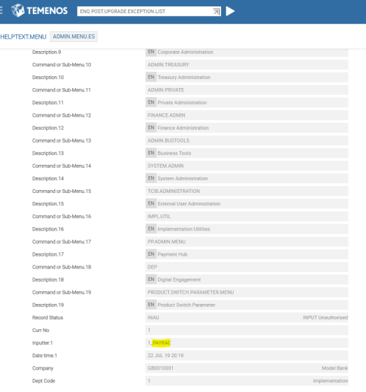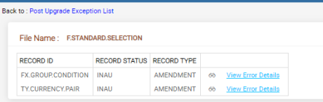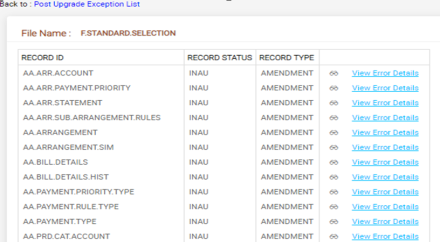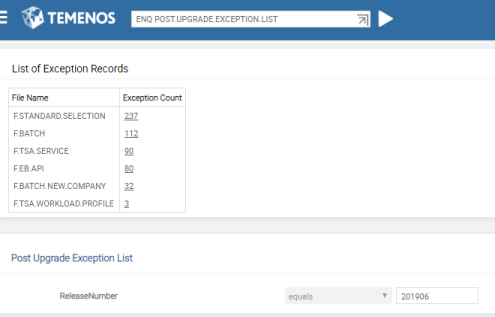 You can use the POST.UPGRADE.EXCEPTION.LIST enquiry to monitor the list of data items released in exception during generic upgrade, updates, product installation and data items released from an online upgrade. This section provides you the details of the corresponding enquiries and reports.
