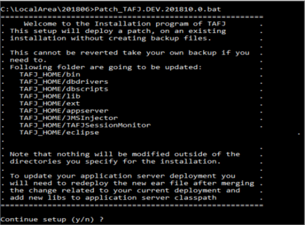 - Run the Patch_TAFJ.release.bat file (here Patch_TAFJ.DEV201810.0.bat).