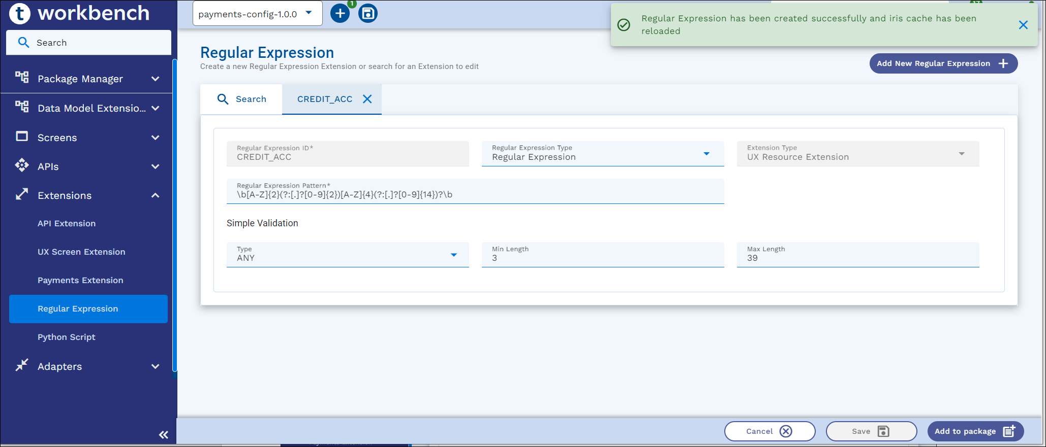 This section explains how to create a new Regular Expression validation, search, edit and package an existing Regex.