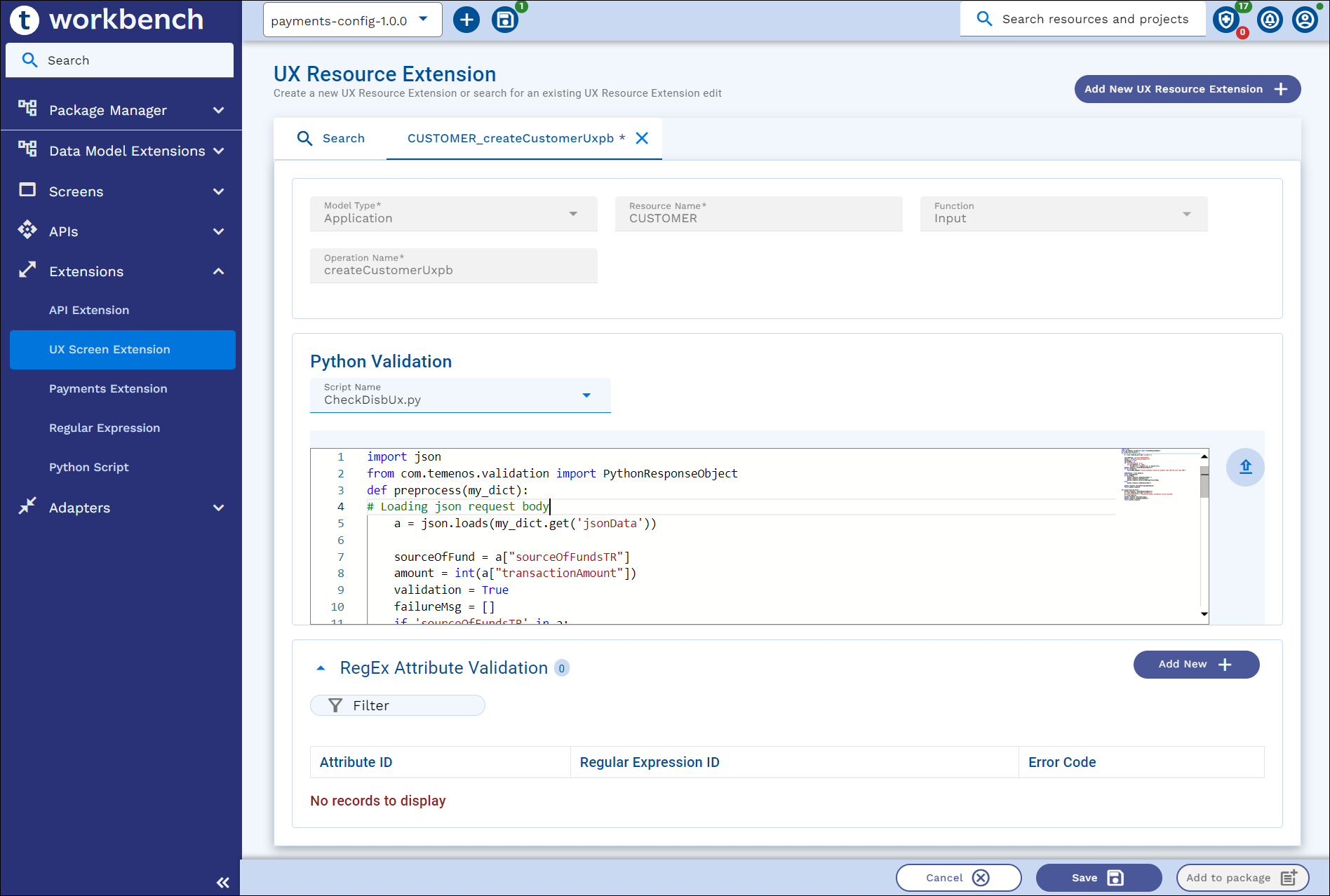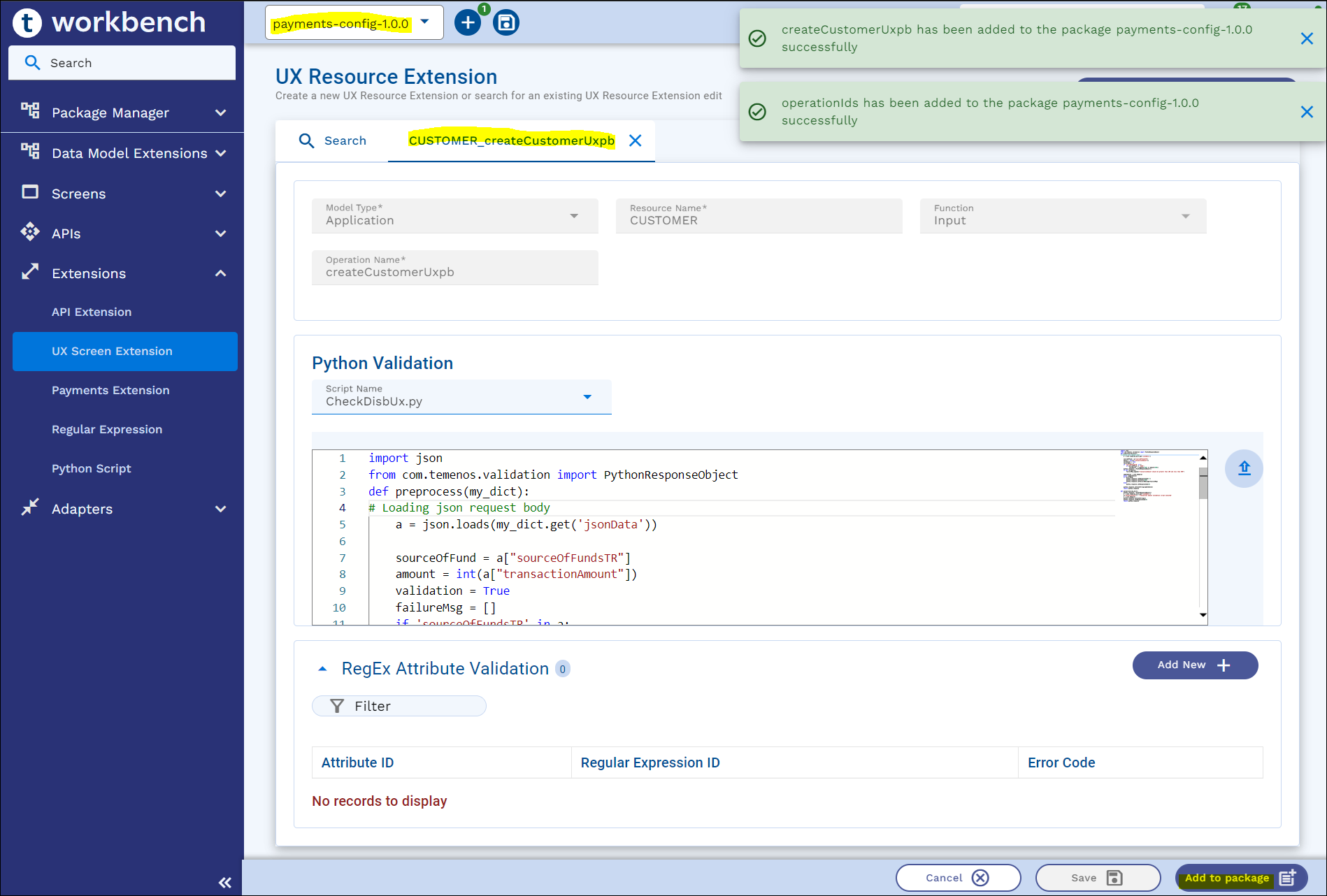 Note: Only ‘UX Resource Extension’ type Python Script will be listedYES (if RegEx Attribute validation is not given)