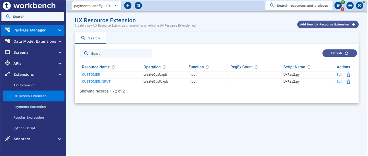 This section details about deleting a UX Resource Extension. To delete an existing UX Resource Extension,