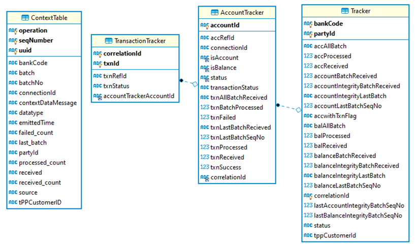 The Tracker, Account Tracker, Transaction Tracker Entities are used to ensure the data related to a customer, accounts, balances, transactions are transformed, streamed and stored correctly in the Holdings and Arrangement Microservices.