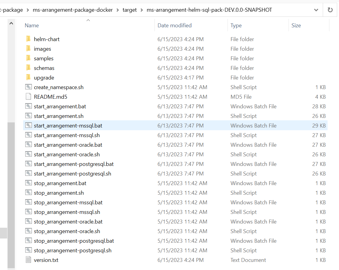 - Download and unzip ms-arrangement-helm-sql-pack-xxxx.zip.
