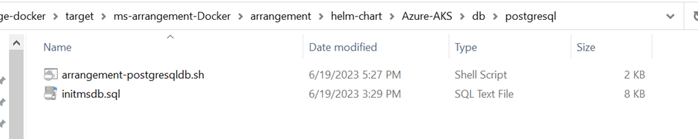 - Navigate to ms-arrangement-helm-sql-pack-xxxx\helm-chart\Azure-AKS\db\postgresql folder.