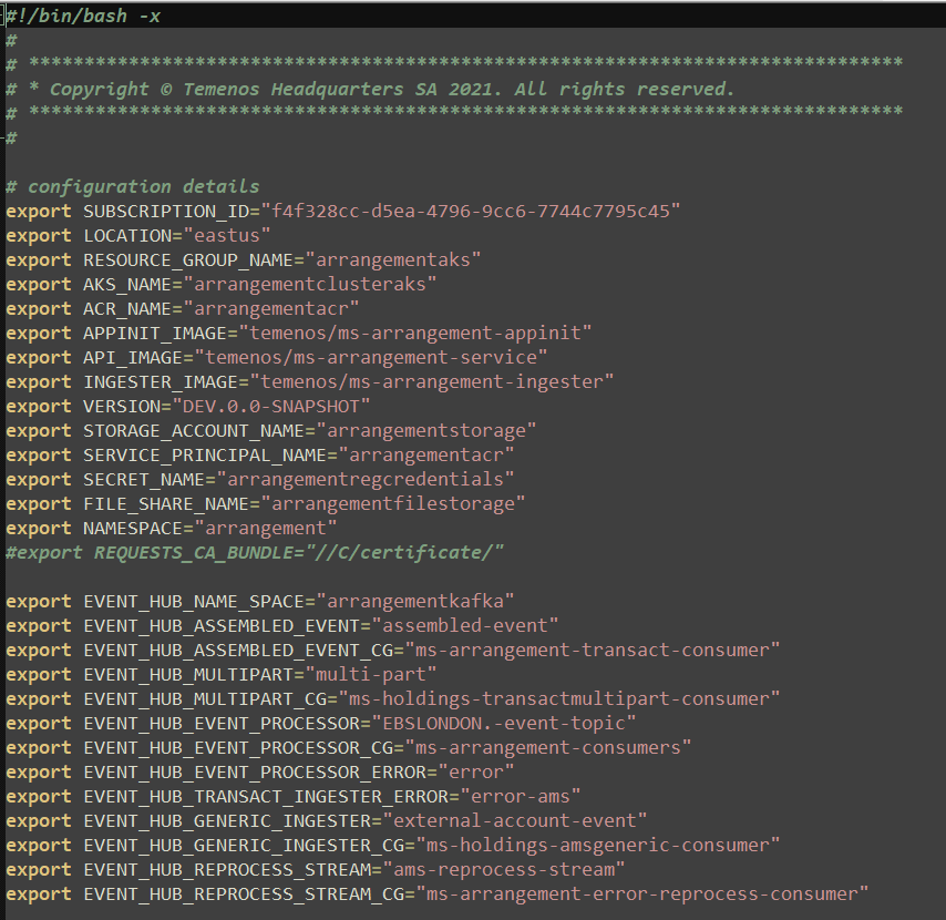 - Edit the env.sh file for configuring the environment variable to be used while configuring AKS.