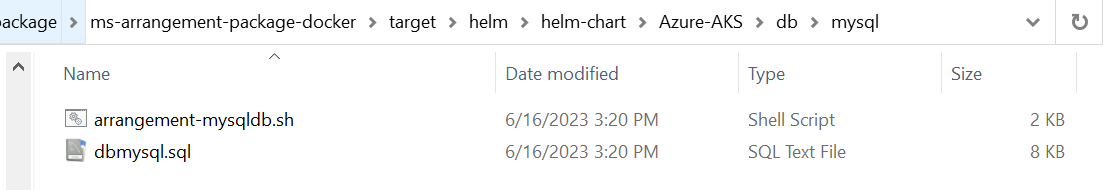 - Navigate to ms-arrangement-helm-sql-pack-xxxx\helm-chart\Azure-AKS\db\mysql folder.