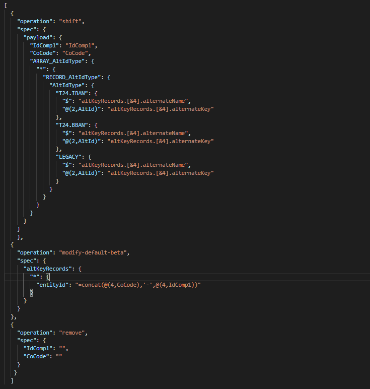 The transformed object will be as below; (the fields should be inside the "altKeyRecords" array object).