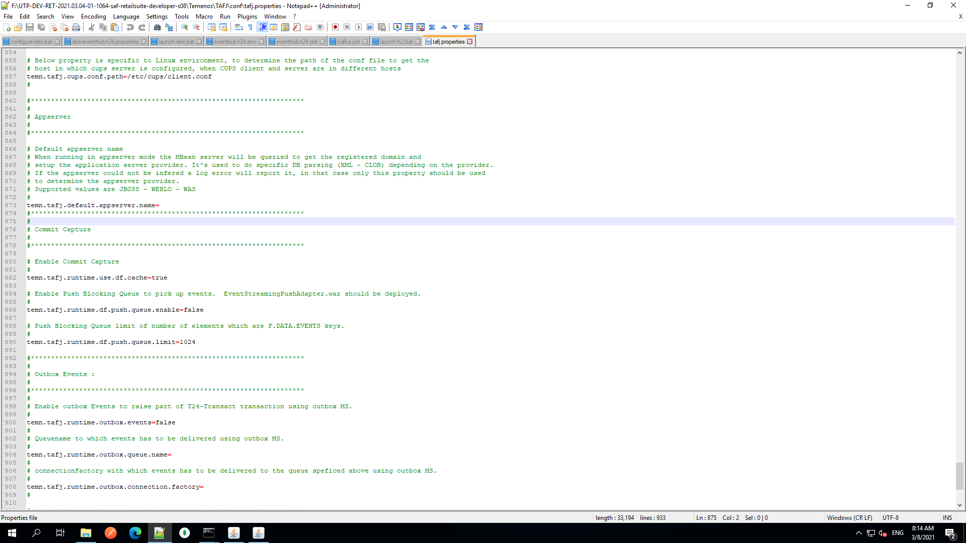 - Navigate to F:\UTP-DEV-RET-2021.03.04-01-1064-saf-retailsuite-developer-s08\Temenos\TAFJ\conf\tafj.properties.