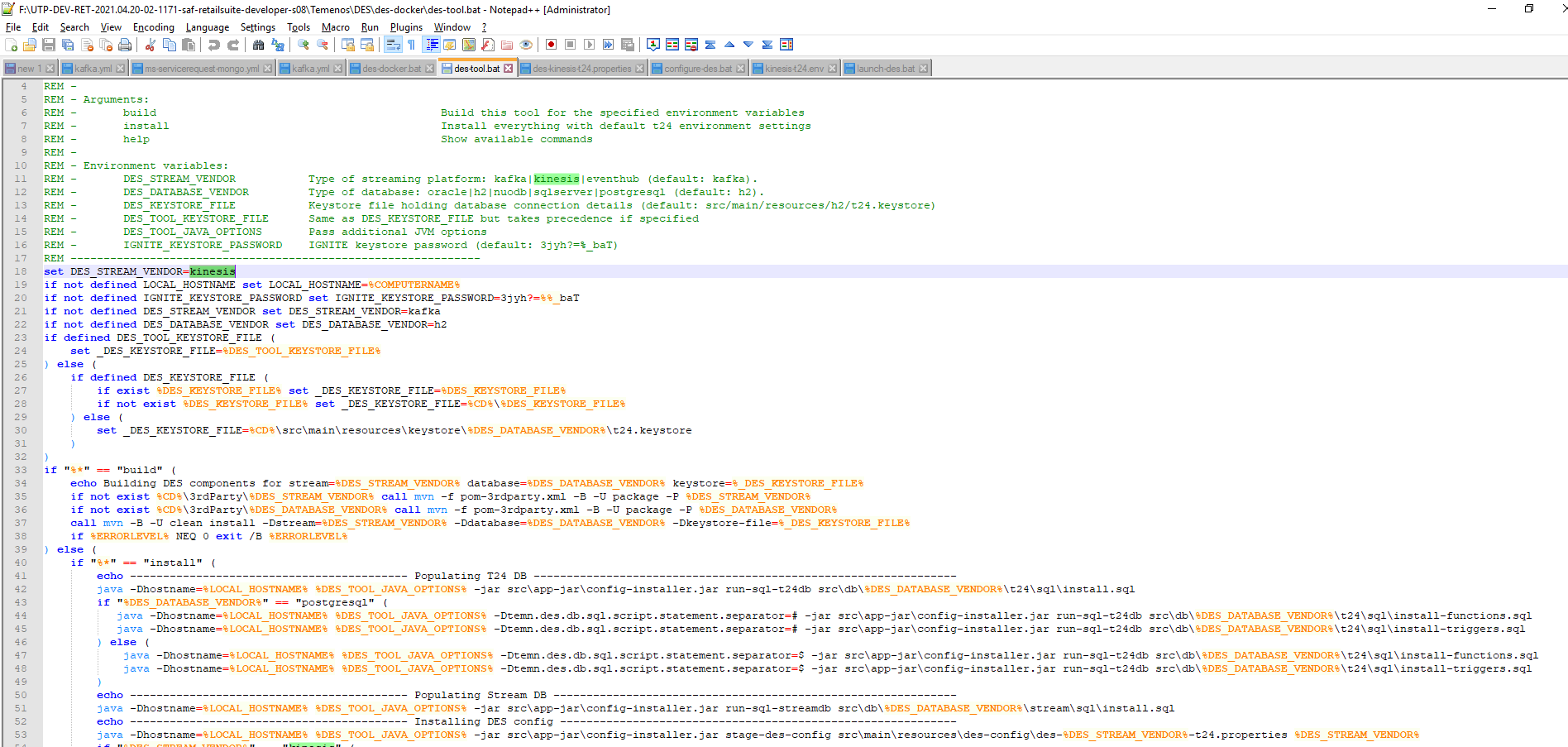 - Navigate to F:\UTP-DEV-RET-2021.03.04-01-1064-saf-retailsuite-developer-s08\Temenos\DES\des-docker\config\kinesis-t24.env.
