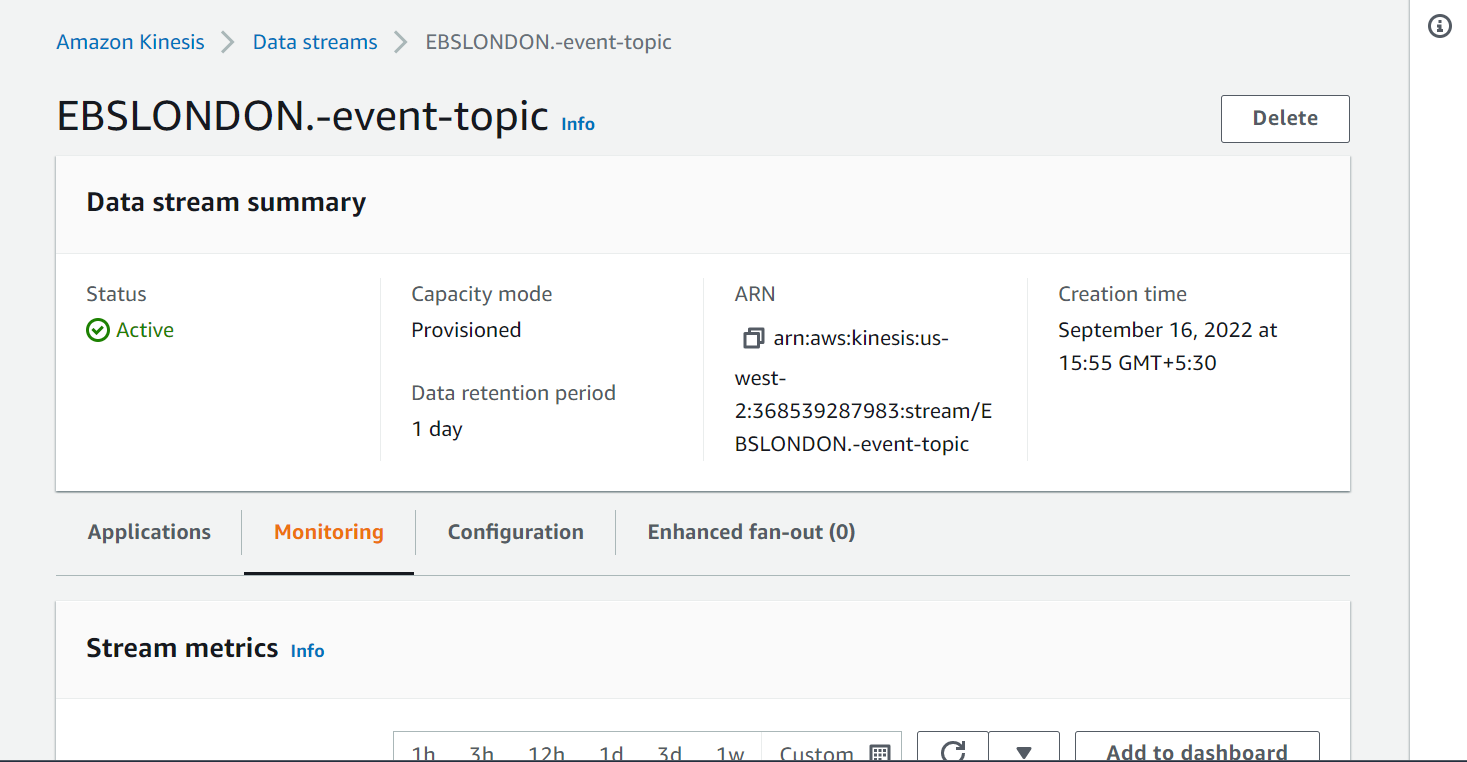 If you execute the install-aws.sh, the <multideployment>-EBSLONDON.-event-topic Kinesis will be automatically created if it does not exists.