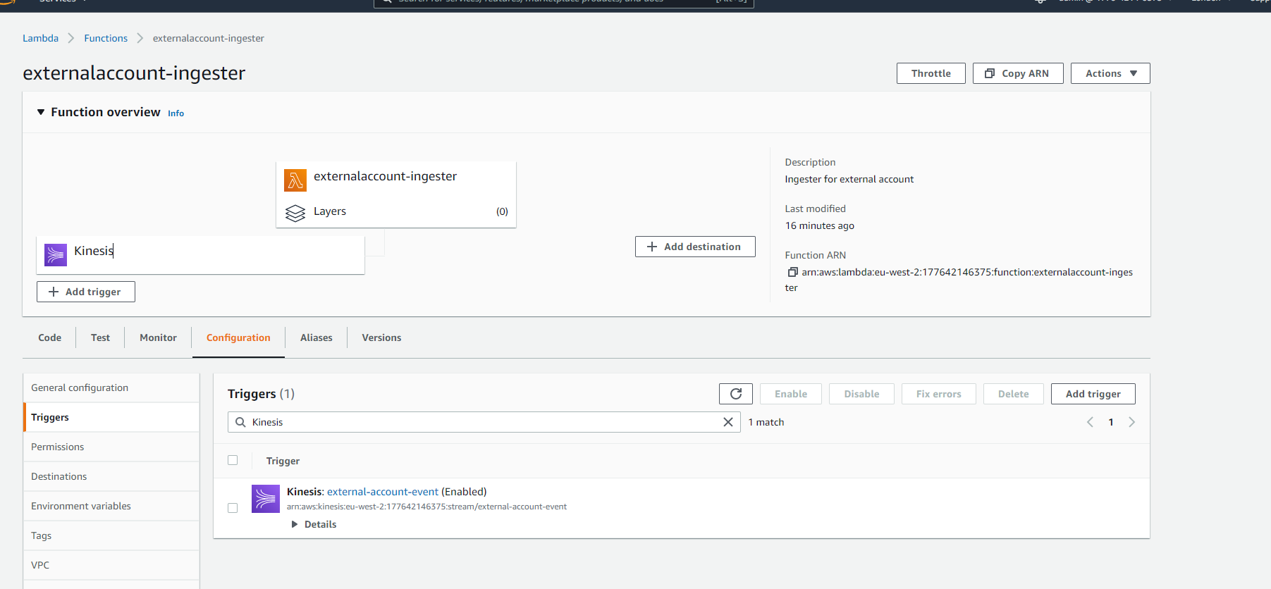If you execute the install-aws.sh, the external-account-event kinesis will be automatically created and it will be linked to the Account Aggregation Ingestion Lambda Function.