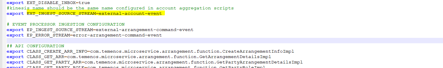 If the Account Aggregation Kinesis is already created and working, then change the following configuration in install-aws.sh as follows: