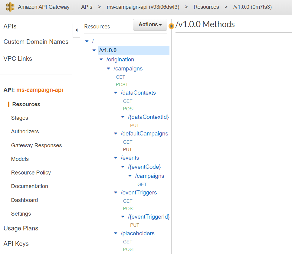 A sample endpoint of Campaign Microservice could be https://samplehost.execute-api.eu-west-2.amazonaws.com/ms-campaign-api/v1.0.0/origination/campaigns.