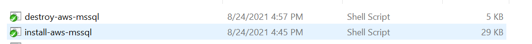 - The destroy-aws-mssql.sh script to stop AWS services and delete those services in the AWS environment.