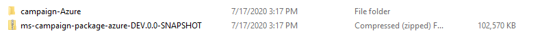 The folder structure of the Campaign Microservice is available as a single release bundle. For example, ms-campaign-package-azure-<release_number>.zip.