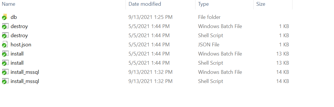 - In a command prompt, go to the installation directory and modify the details such as resource group, location, DB details, etc., in the install_mssql.sh/install_mssql.bat script specific to the installation.