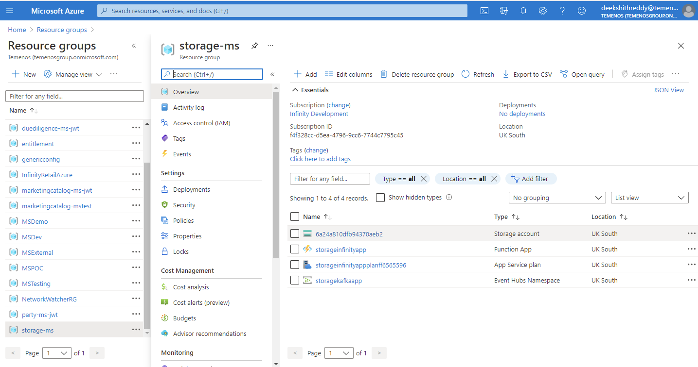- Login in to the Azure portal and check whether the Resource Group and Function app is created: