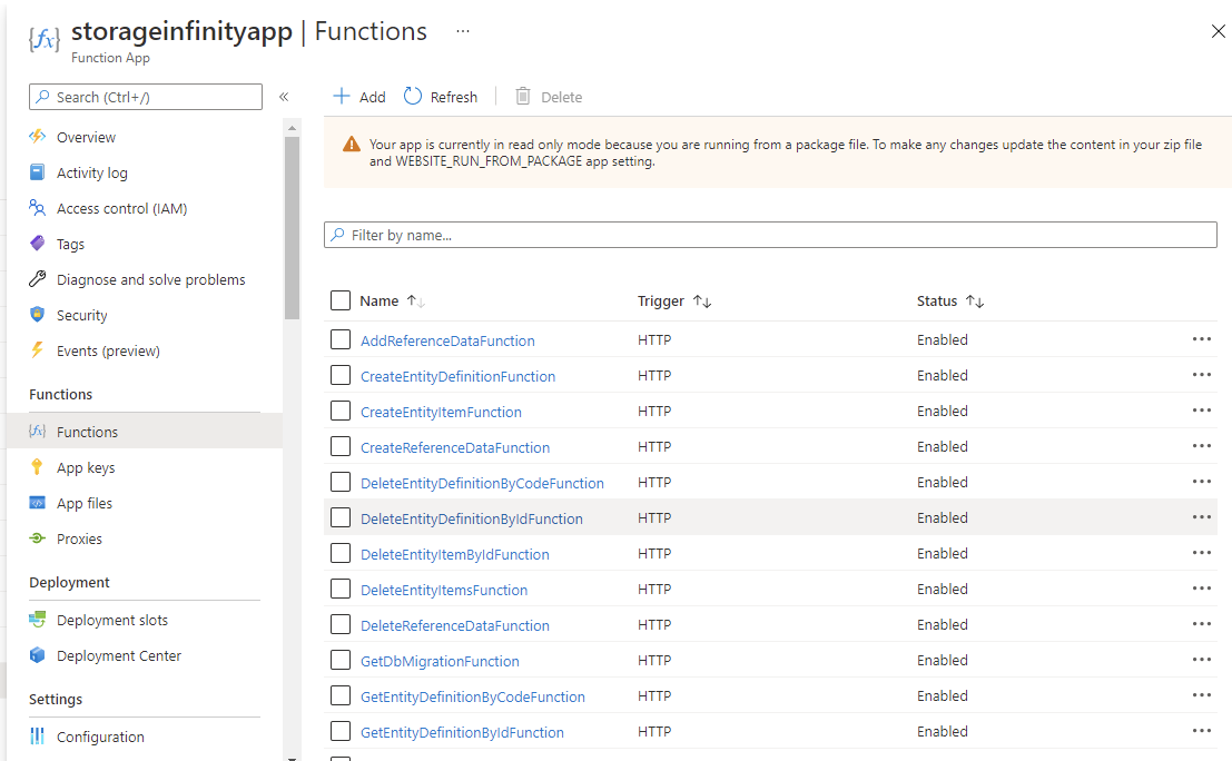 The default Azure function app name in the script can be changed. In case of app name changes, the folder available (ms-storage-azure\target\azure-functions\<app folder>\) in the name of the app should also be renamed.